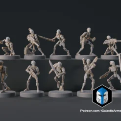 10 poses are included of various poses/weaponry including their typical E-5 Blaster, Energy Shield, and Vibroblade. Each pose includes a pre-separated version with the base removed and each piece also includes a pre-supported counterpart!