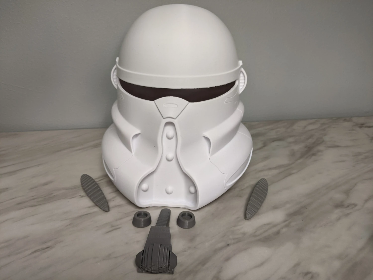 This helmet will be shipped in 6 pieces: the Main Body, 2 Aerators, 1 Mouth Detail, 2 Vent Details