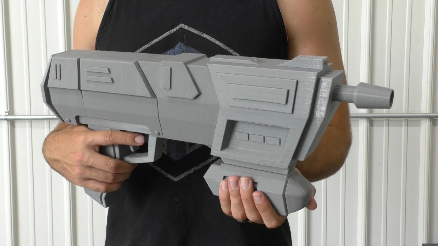 The life size blaster of Wrecker and Hunter. Please note: the first photo merely represents a finished version of this DIY kit.