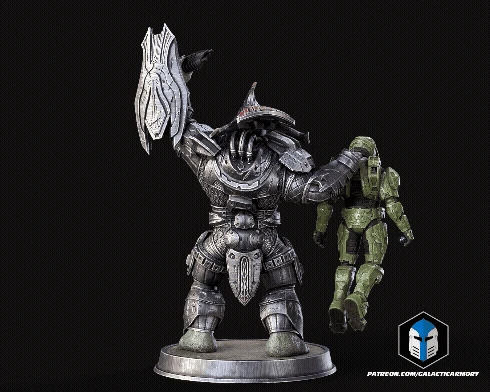 3D Print Files in STL format of a 1:10 scale Brute Chieftain holding Chief in the iconic Believe pose!