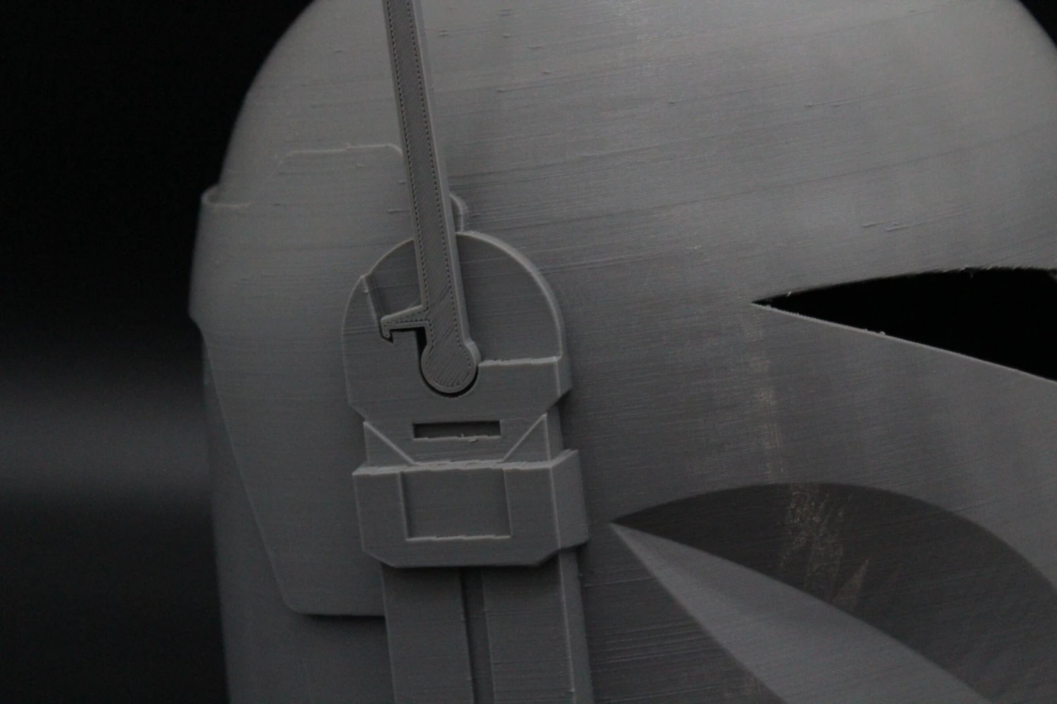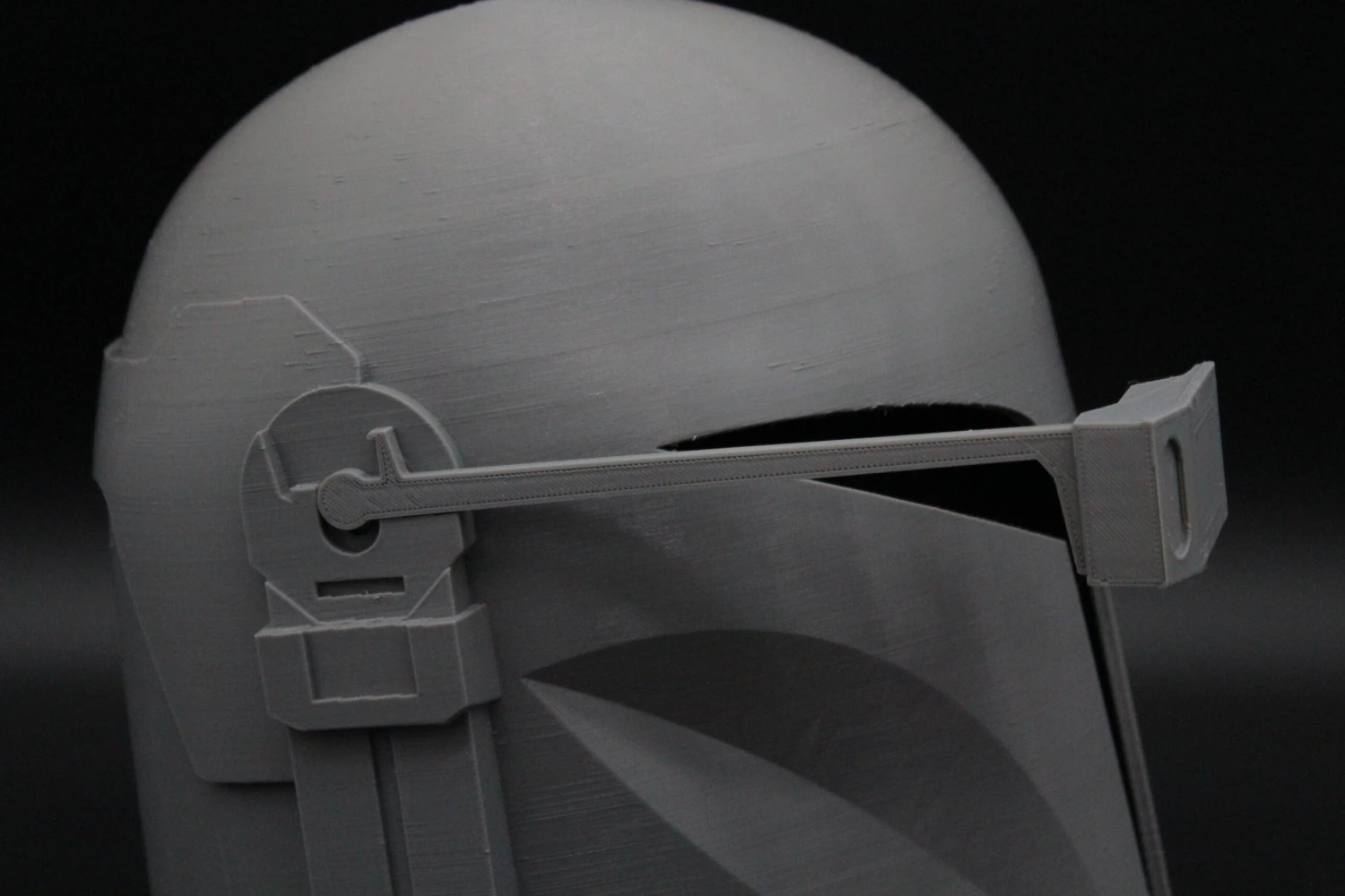 This helmet comes in 5 easy to assemble pieces. A moveable rangefinder is made possible by lifting up on the antenna and rotating downwards.