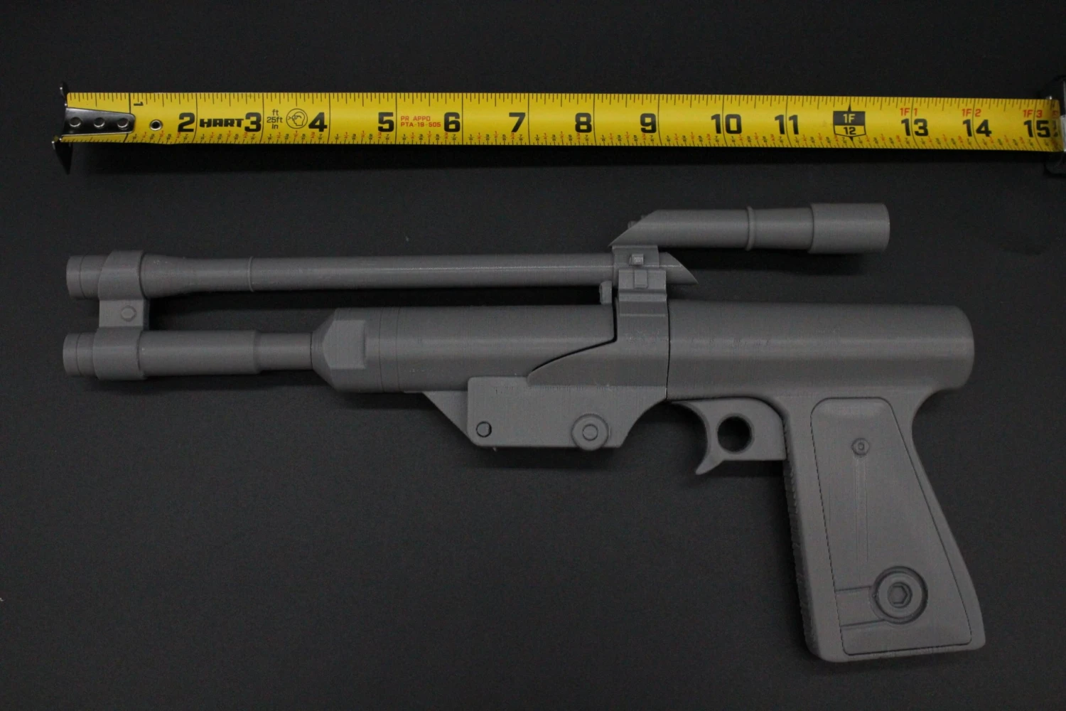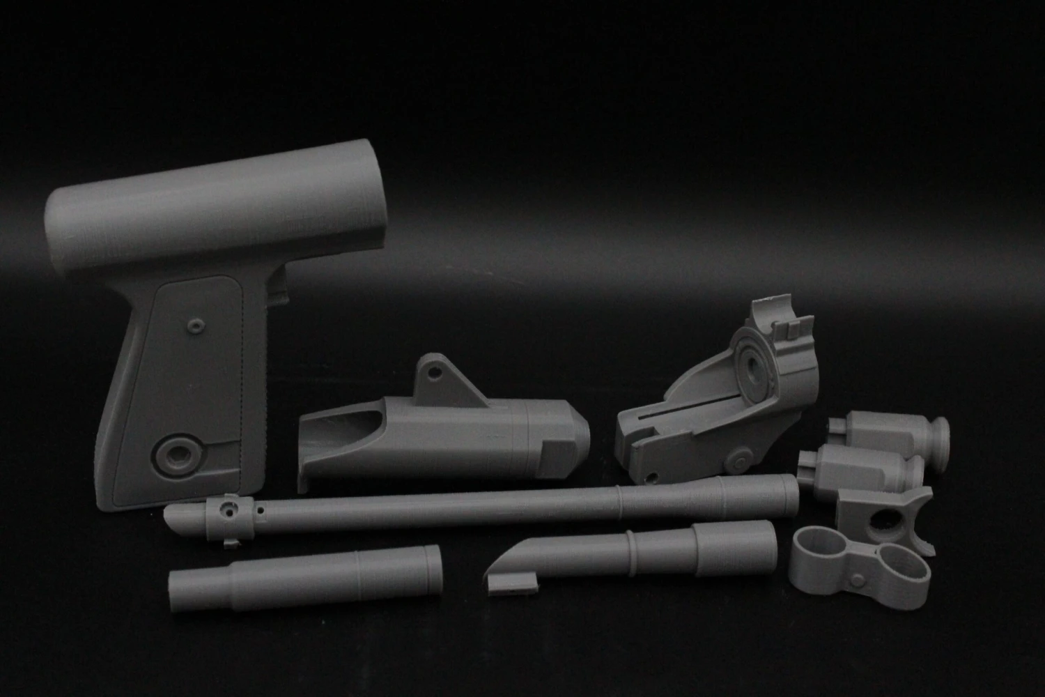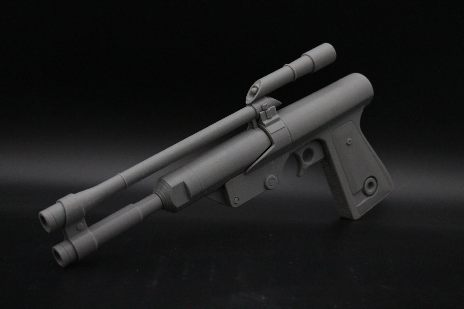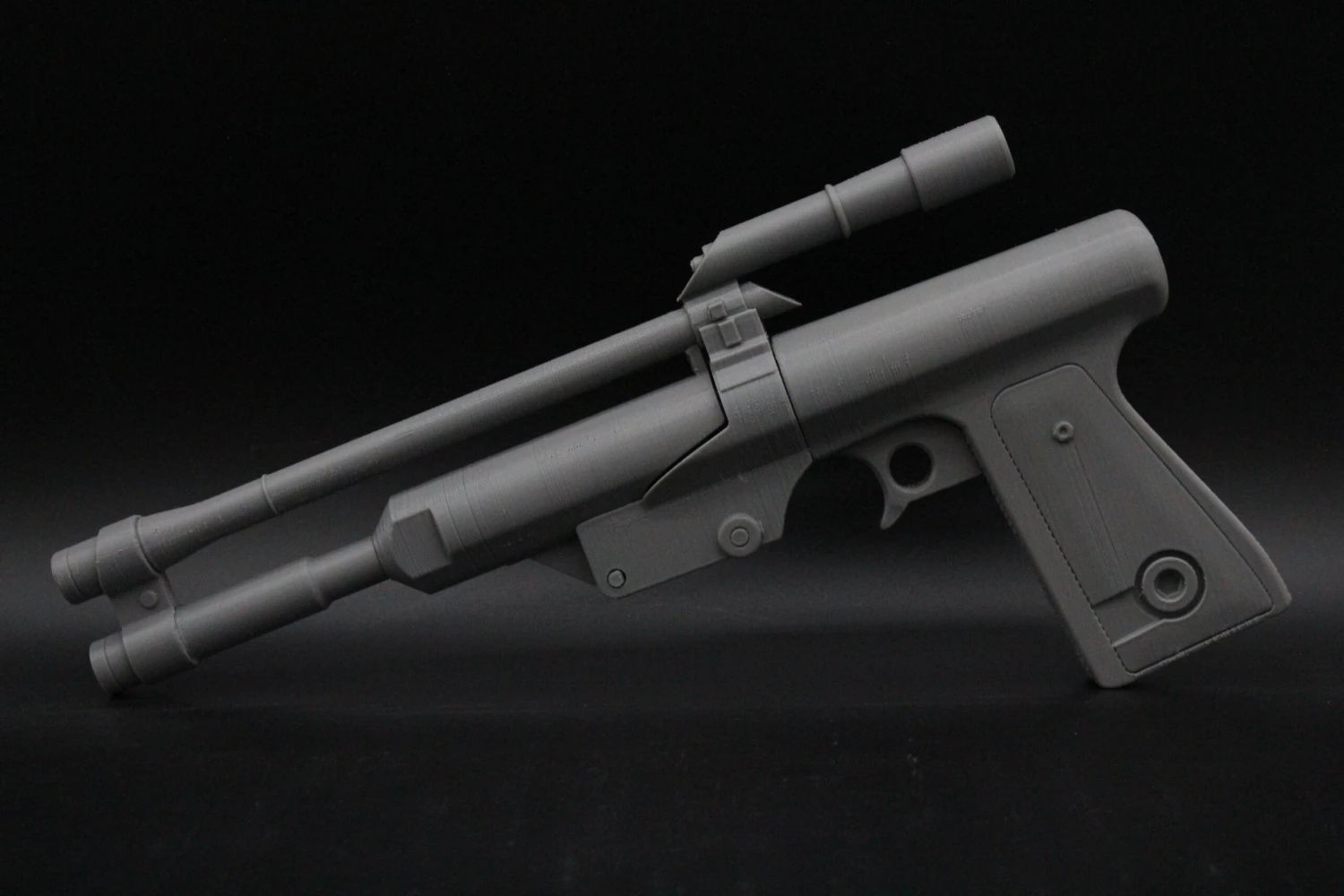 Raw 3D printed parts for Boba Fett’s blaster pistol. Please note: this blaster does NOT come assembled and several pieces will need to be glued in place.