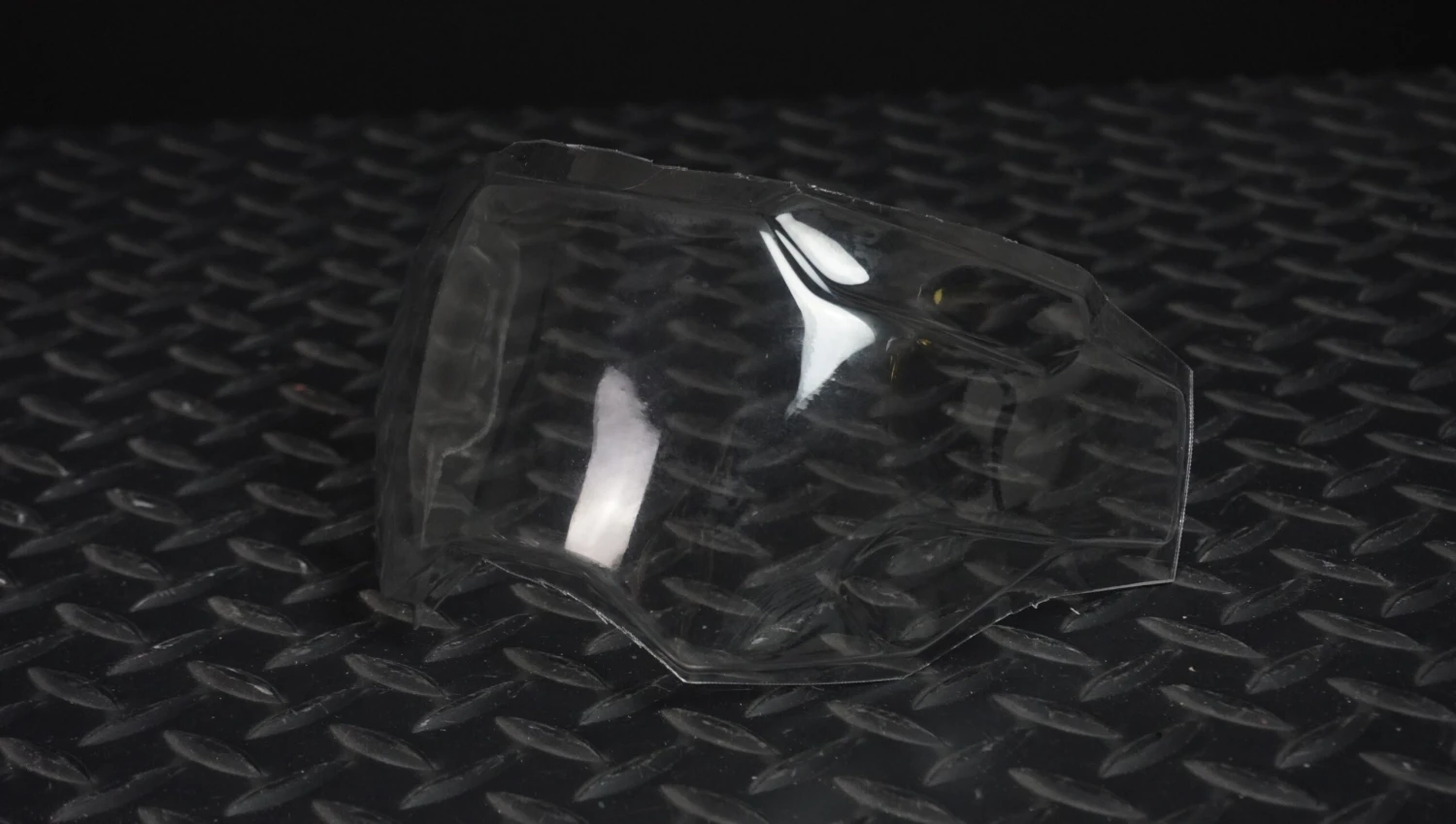 Visors are available in 3 finishes: clear, dyed, and dyed and tinted. Clear visors are raw vacuum formed visors. Dyed visors are dyed a golden yellow. Dyed and tinted visors are dyed and then tinted with a chrome paint for reflectivity.