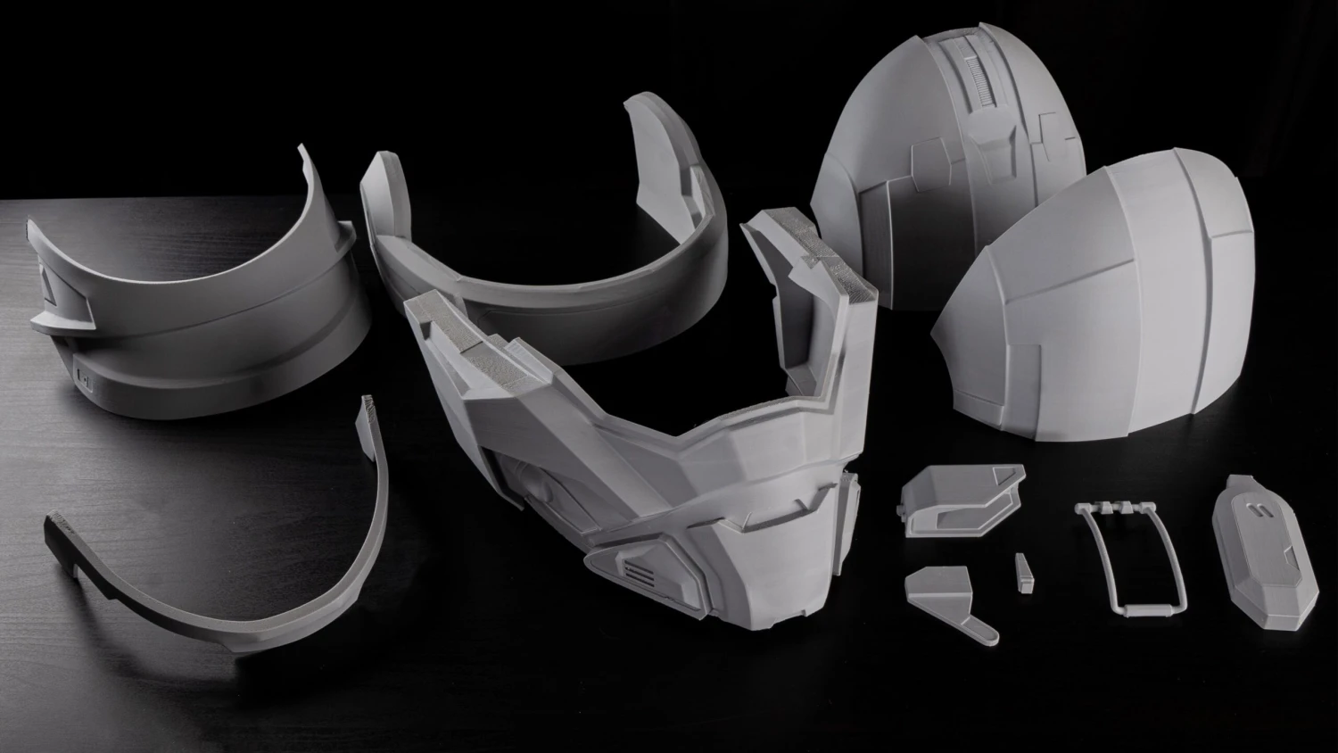 The helmet will be shipped in 11 pre-separated parts that will need assembled together.