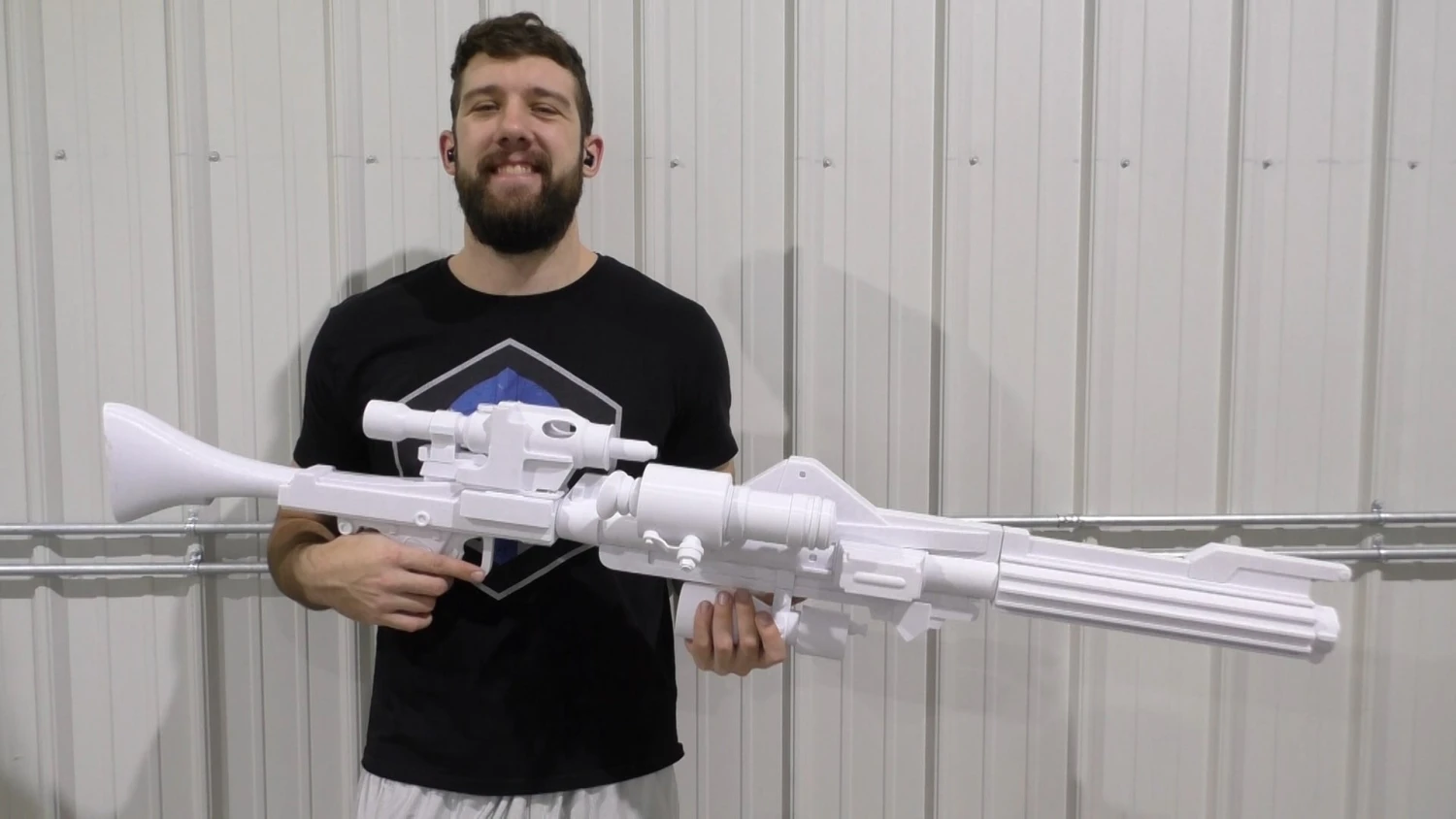 Inspired by the rifle from Battlefront 2 this rifle comes in 15 interlocking parts. Measuring the 501st approved 55″ (139 cm) in length this rifle contains the basic parts for your own rifle.