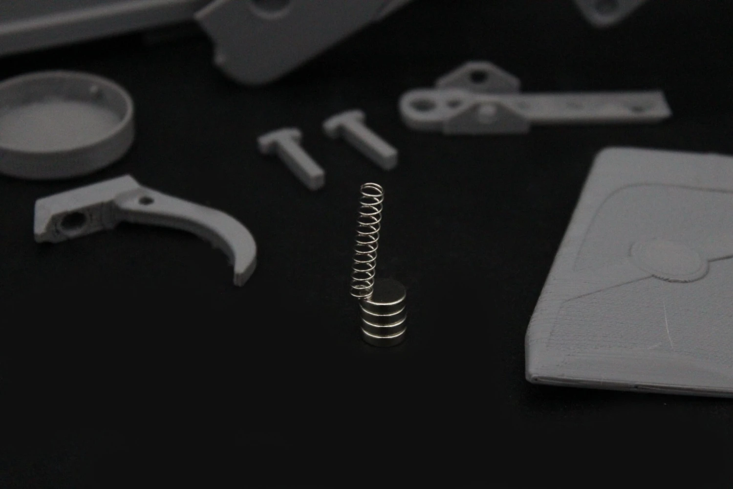Includes the 8 magnets to assemble the main body and 1 spring to make the trigger squeezable.
