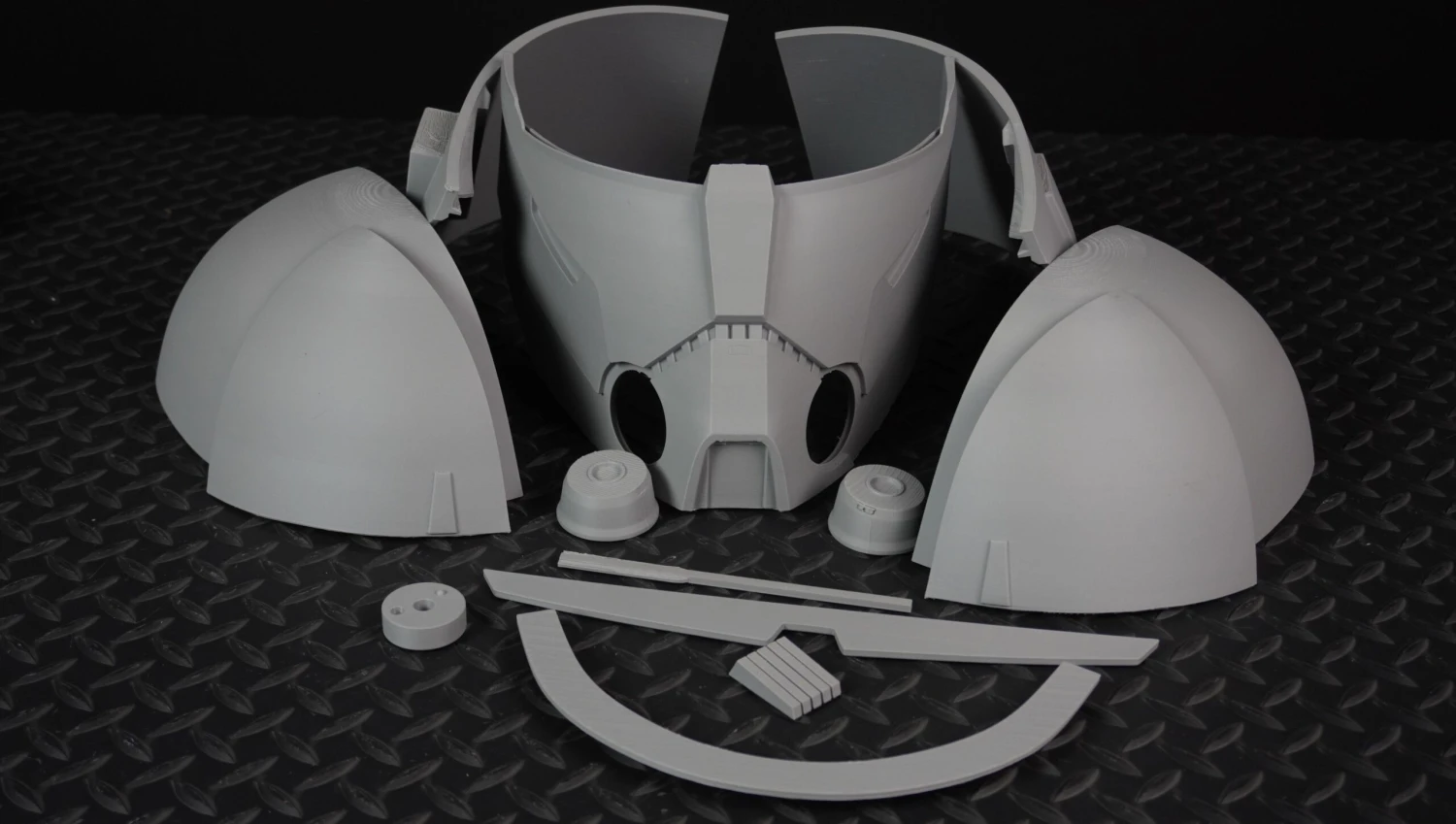 This helmet will be shipped in durable PLA in whatever color we have on hand – usually white or gray.