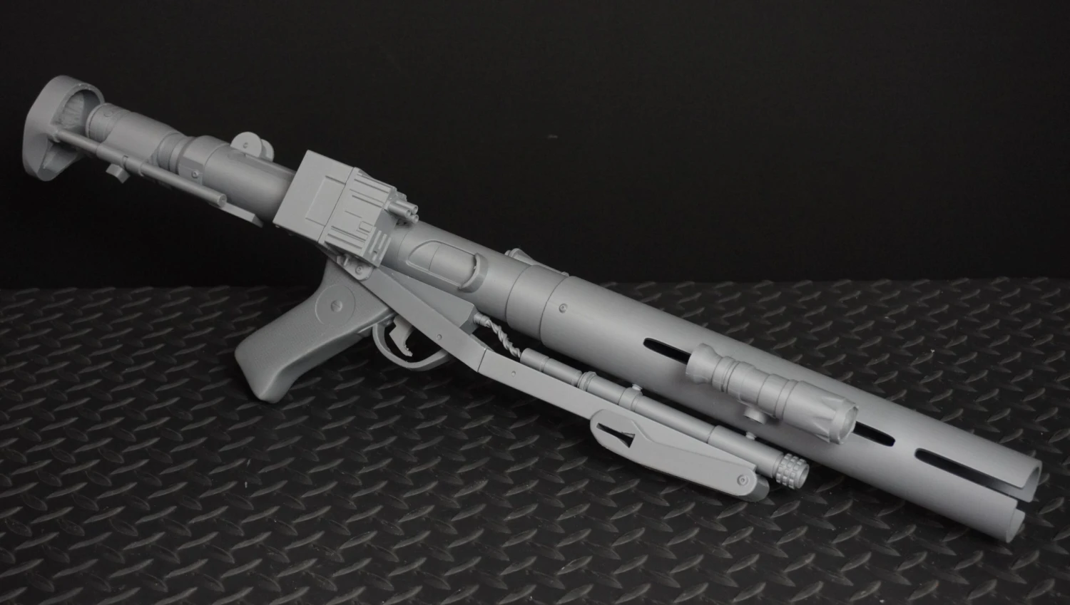 A 3d printed prop replica of an E-11D blaster rifle! Please note: this is a prop replica – not a functional firearm.