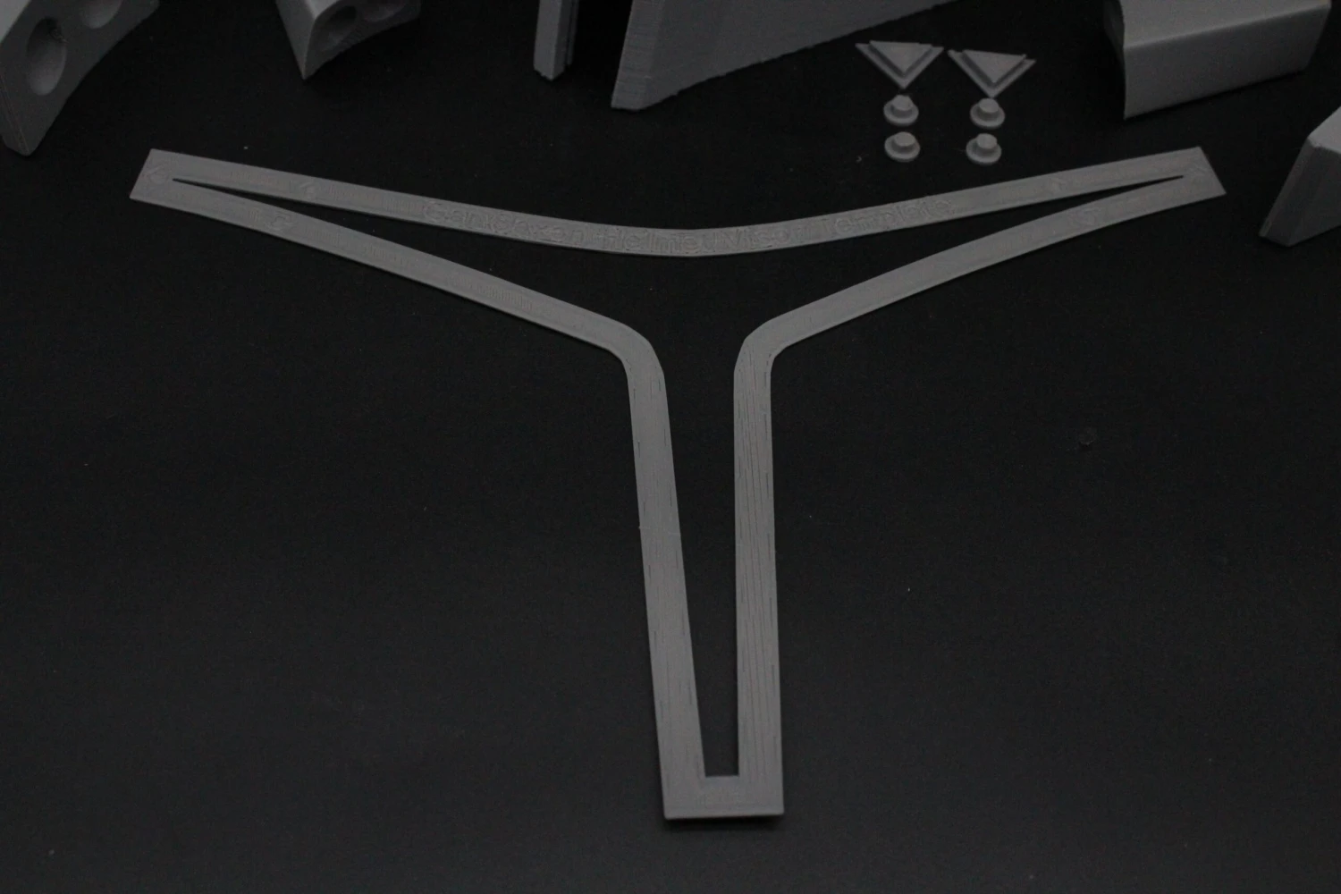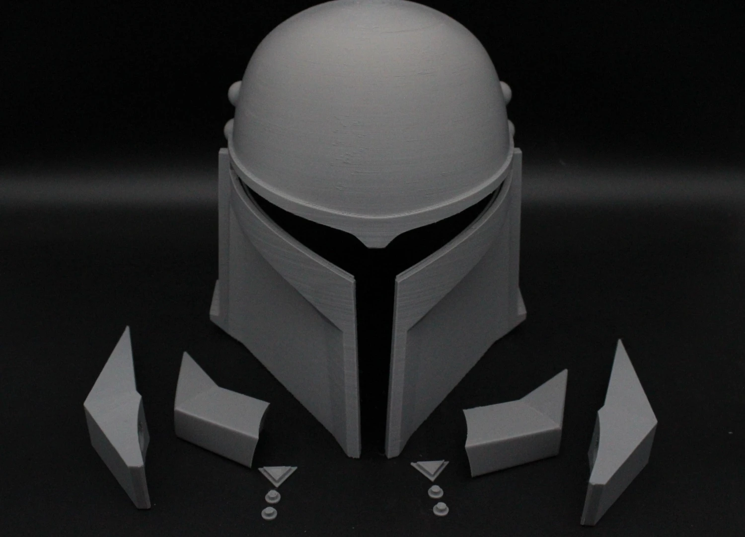This kit is 3D printed in durable PLA and comes as 12 separated parts. The horns are aligned by half spheres on the dome of the helmet.