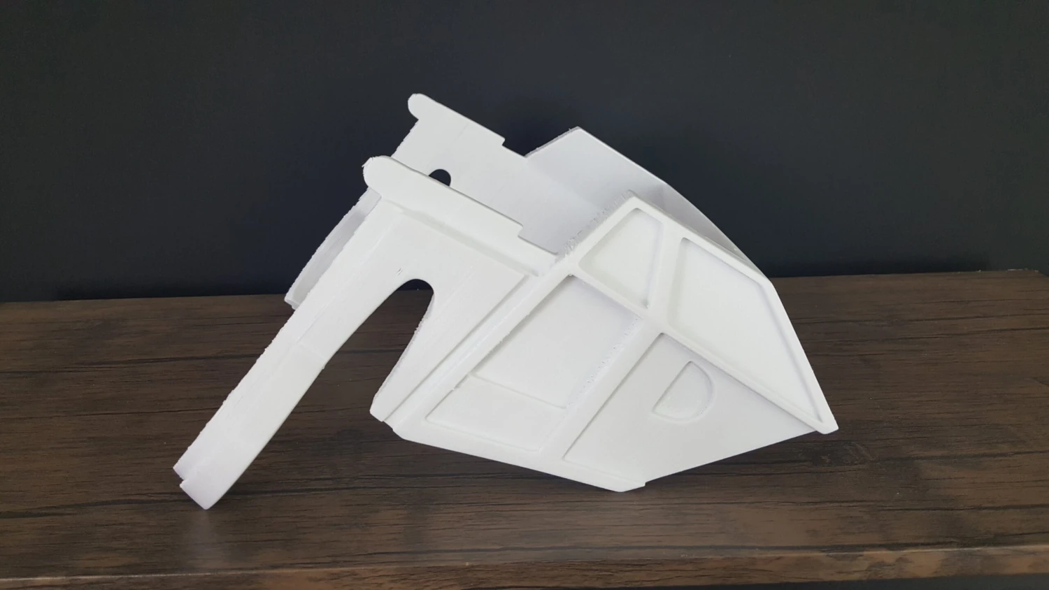 This helmet will be shipped in 4 pieces: Front, Top, Back, and Visor with whatever color filament I have on hand.