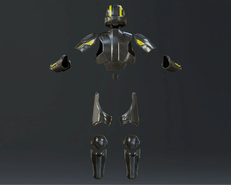 The armor includes a few versions of various parts! The armor is a bit unique in that a lot of the armor plates are surrounded by fabric padding. To address that we’ve made 2 versions of the forearms and thighs: 1 with the padding included in the STL, and 1 with the armor plate only. Decide for yourself if you just 3d print everything for simplicity or go for the fully accurate version with soft parts intertwined!