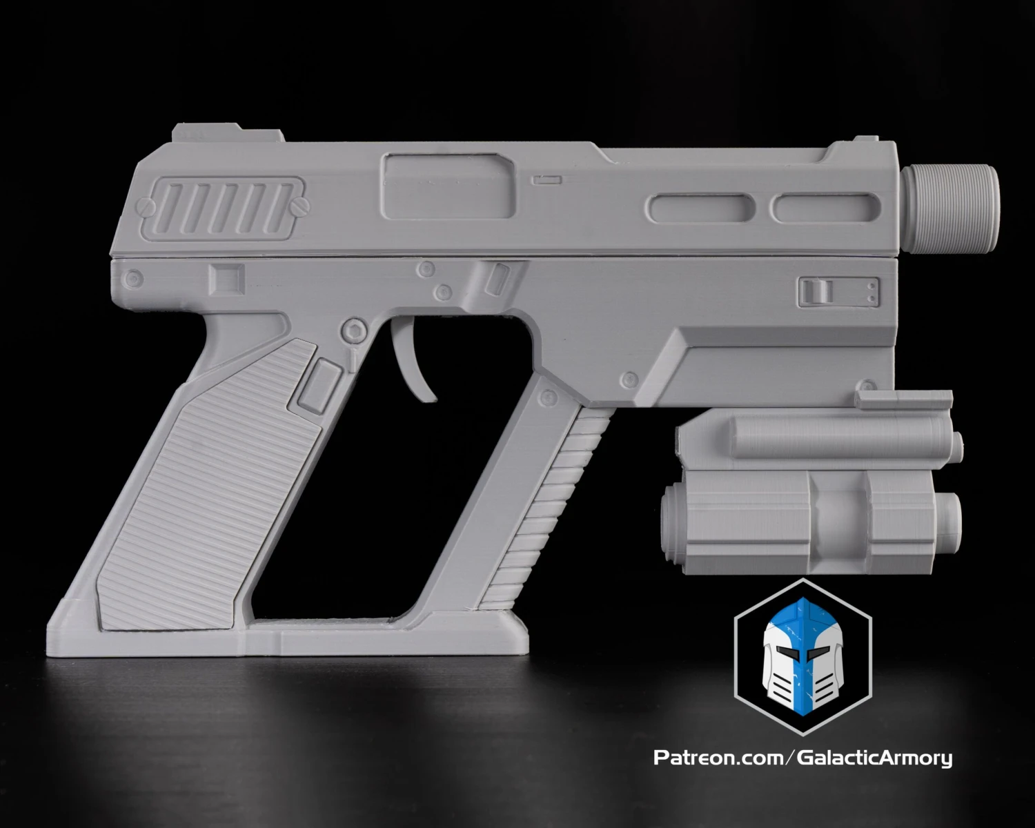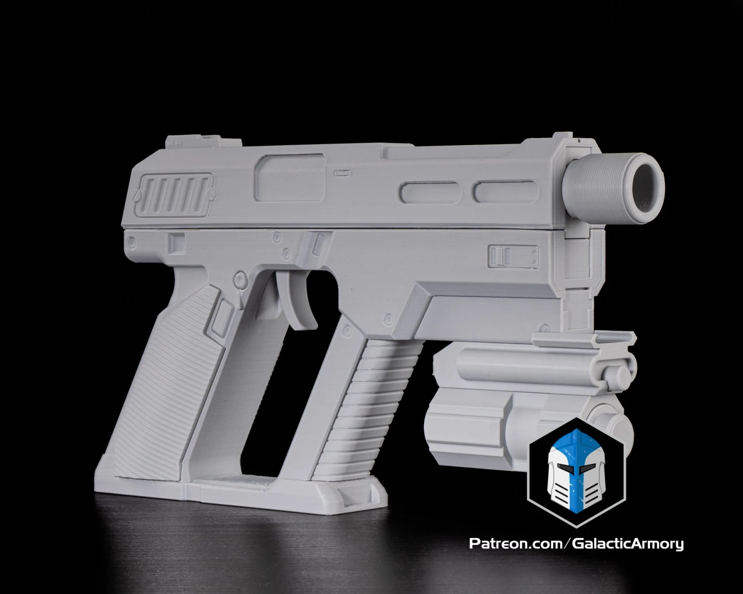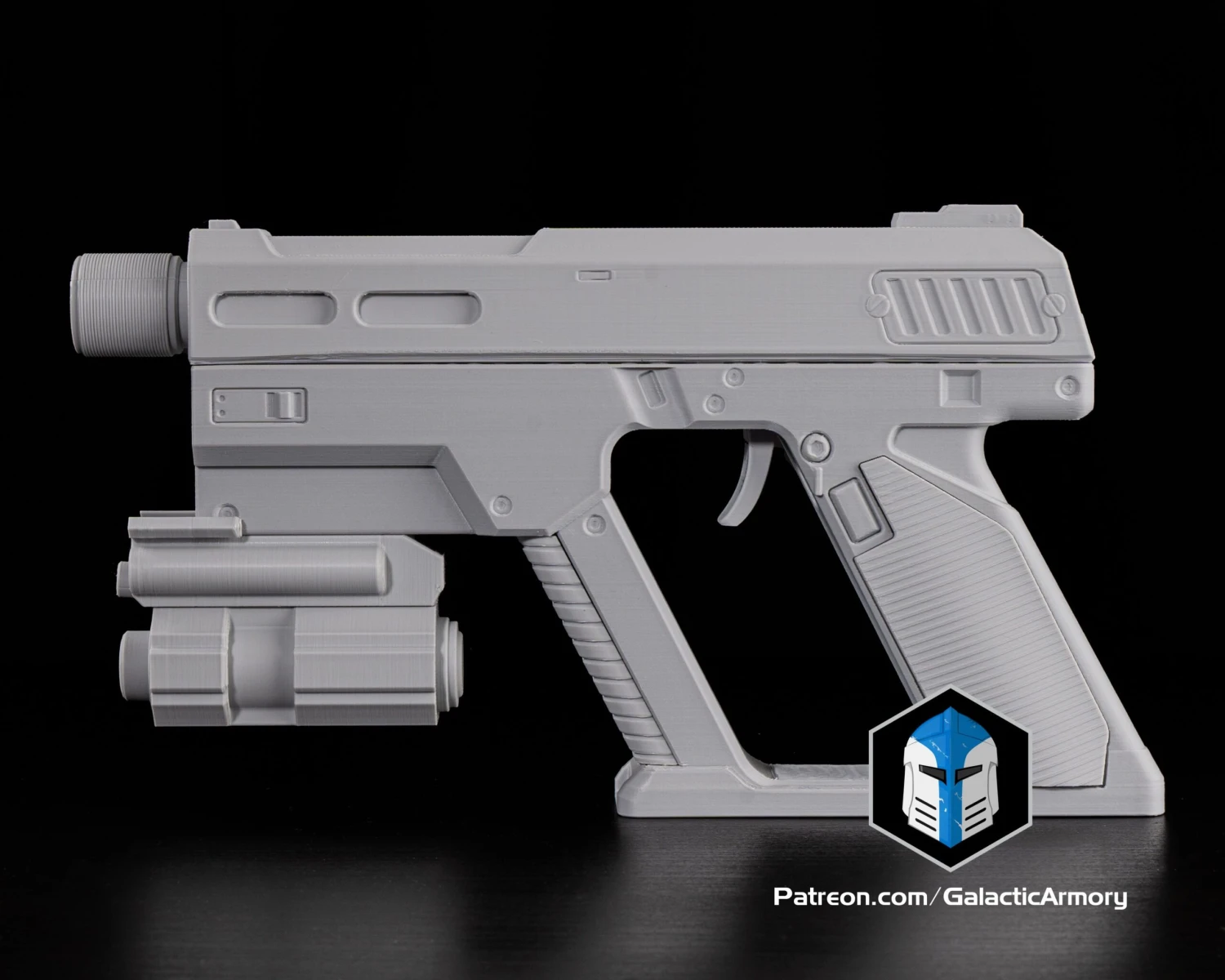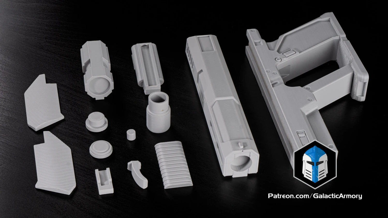 Raw 3d printed parts of a Peacemaker Pistol from Helldivers 2