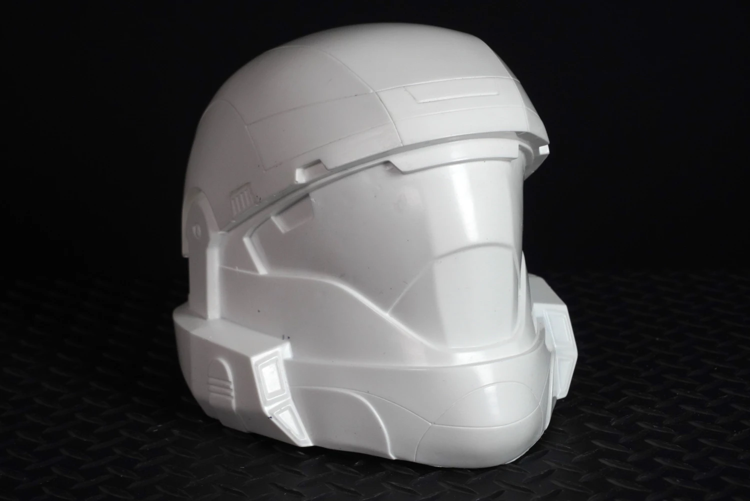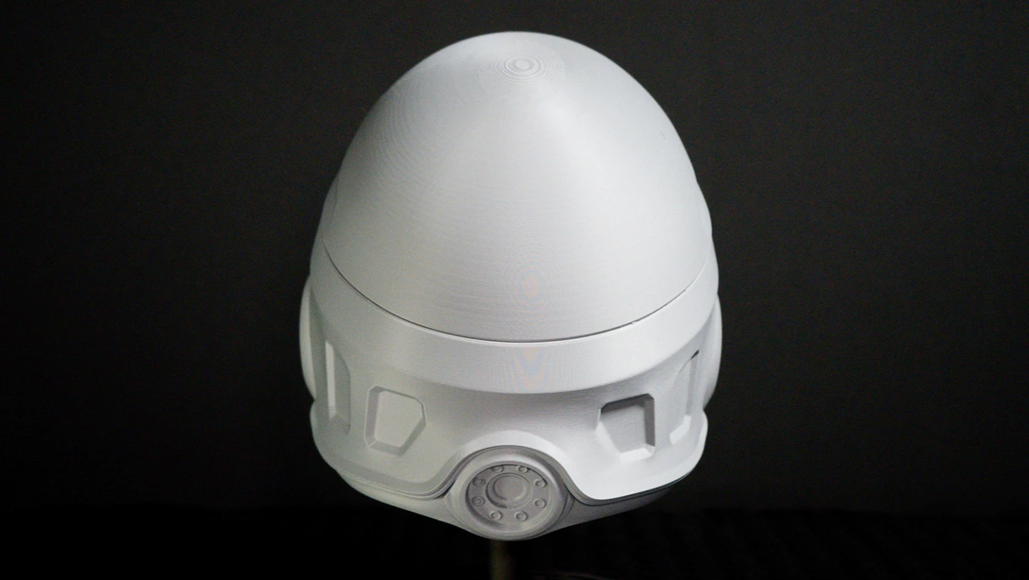 A 3d printed replica helmet of the Righteous Helmet from Helldivers 2.