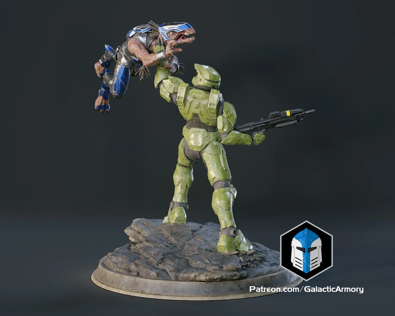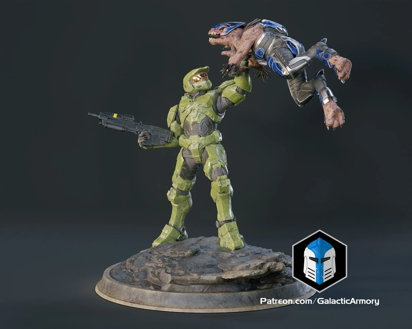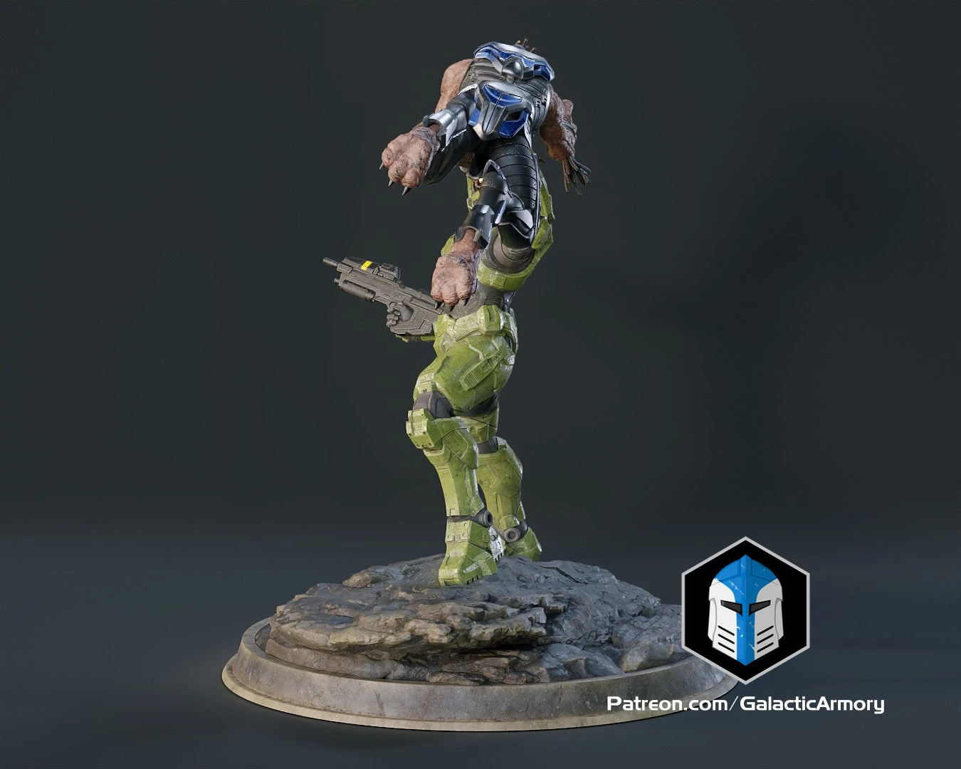 Both utilize a 2mm metal rod through Master Chief’s arm into the Jackal’s head for support.