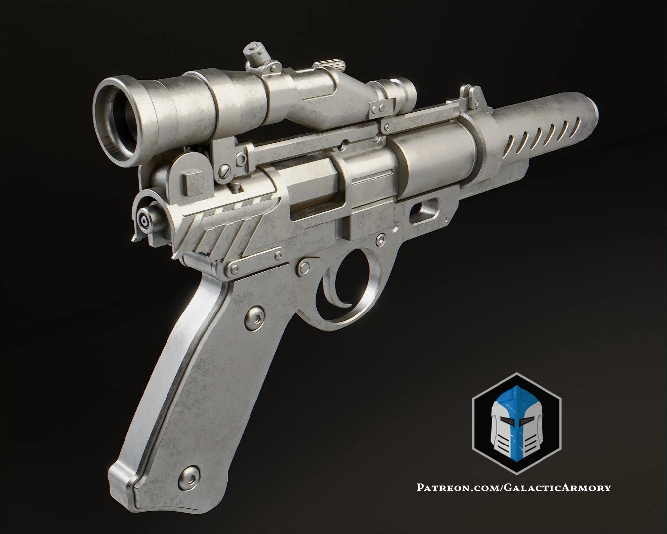 This blaster has been separated into 23 individual pieces to help fully capture all the details of this weapon.