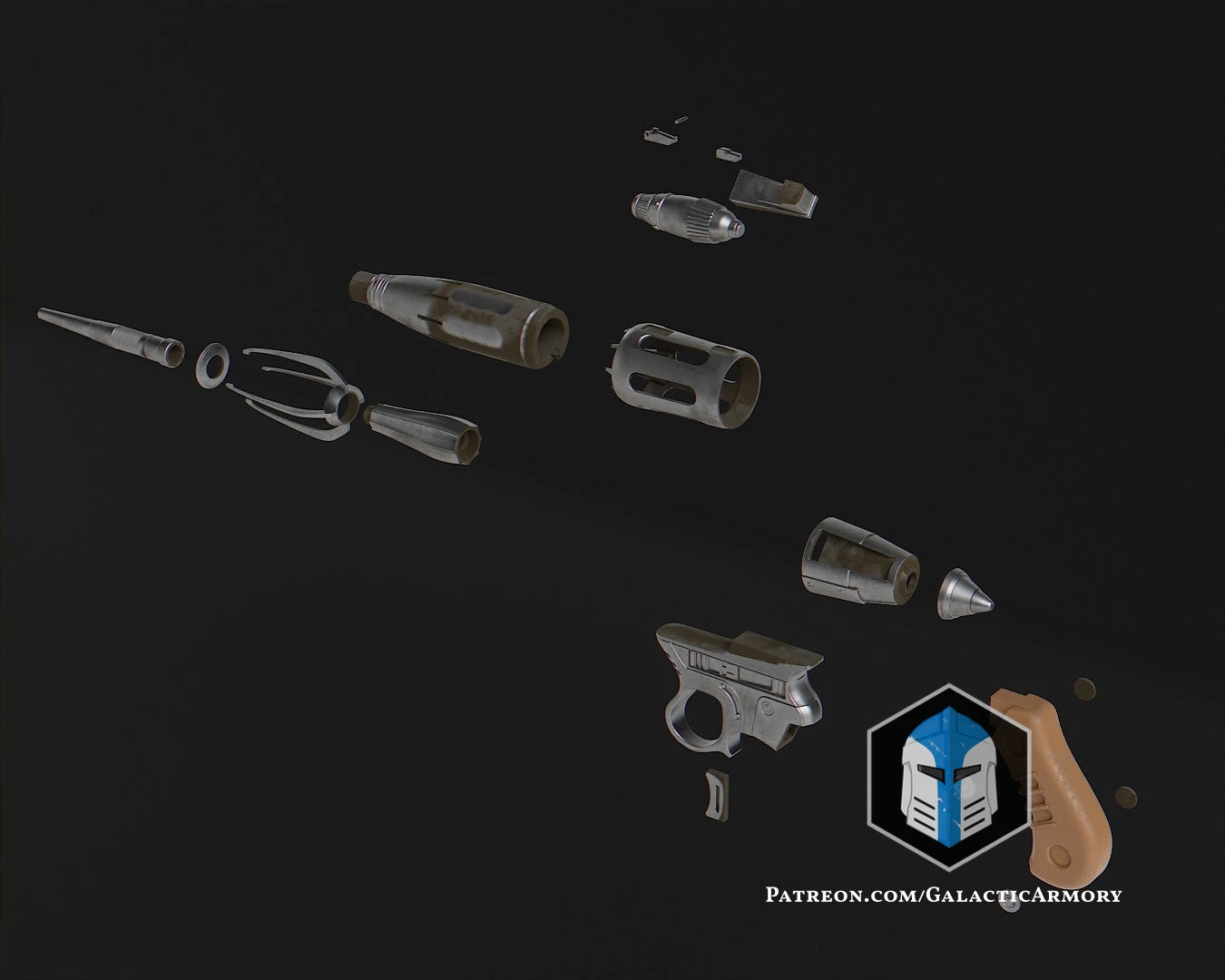 This blaster has been separated into 20 individual pieces to help fully capture all the details of this blaster.