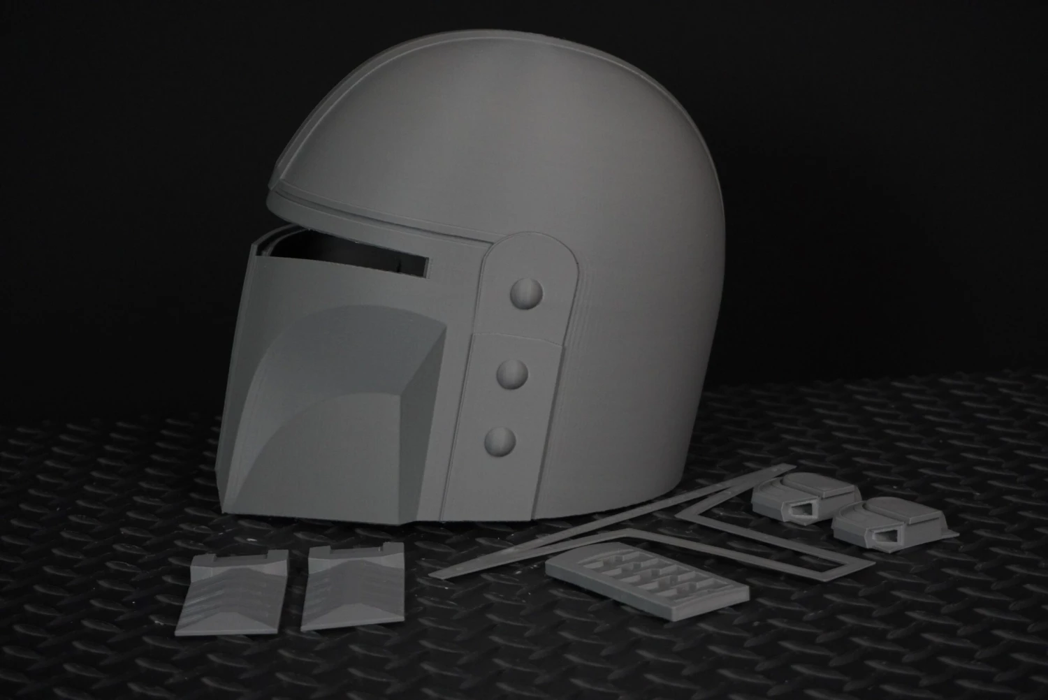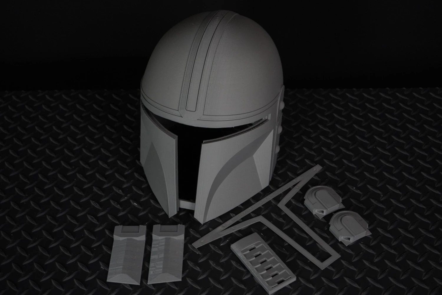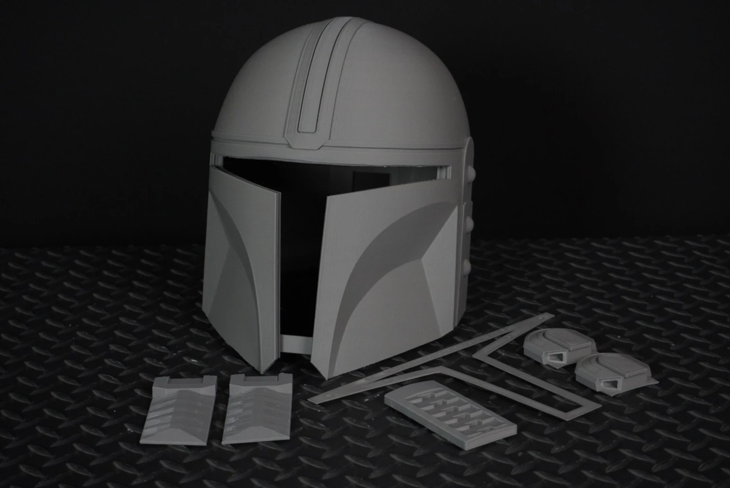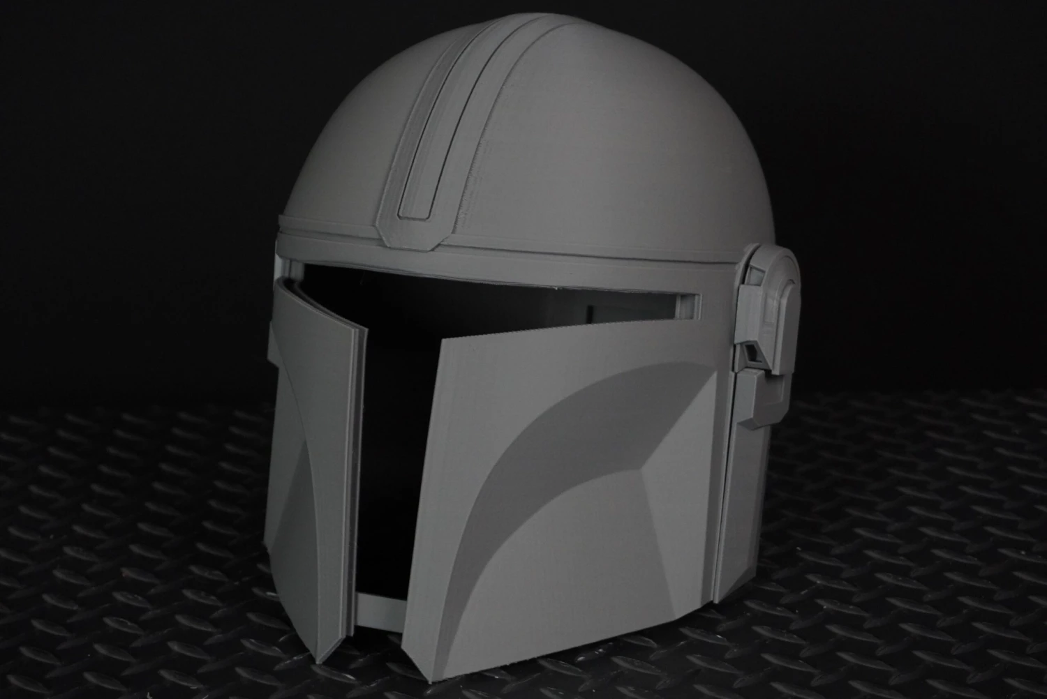 The iconic helmet of the Mandalorian Din Djarin as seen in the TV Show The Mandalorian