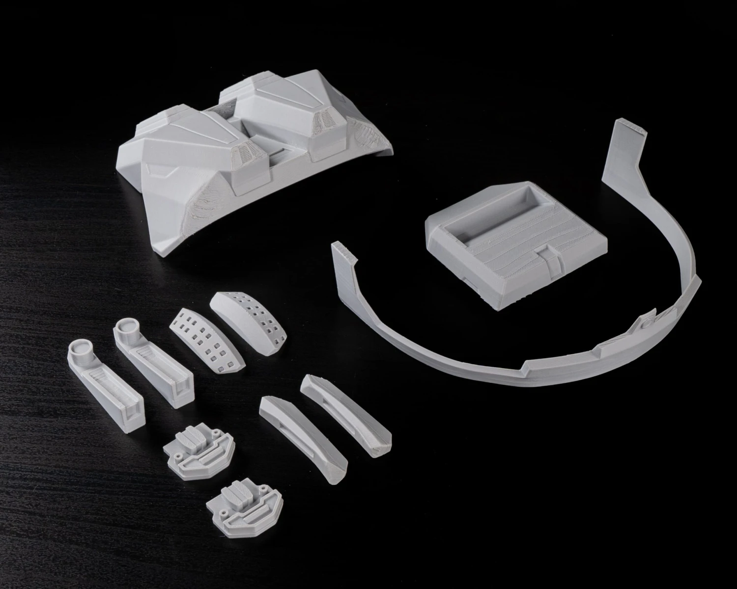 Printed in durable PLA at an extremely high detail level as 15 pre-separated pieces.