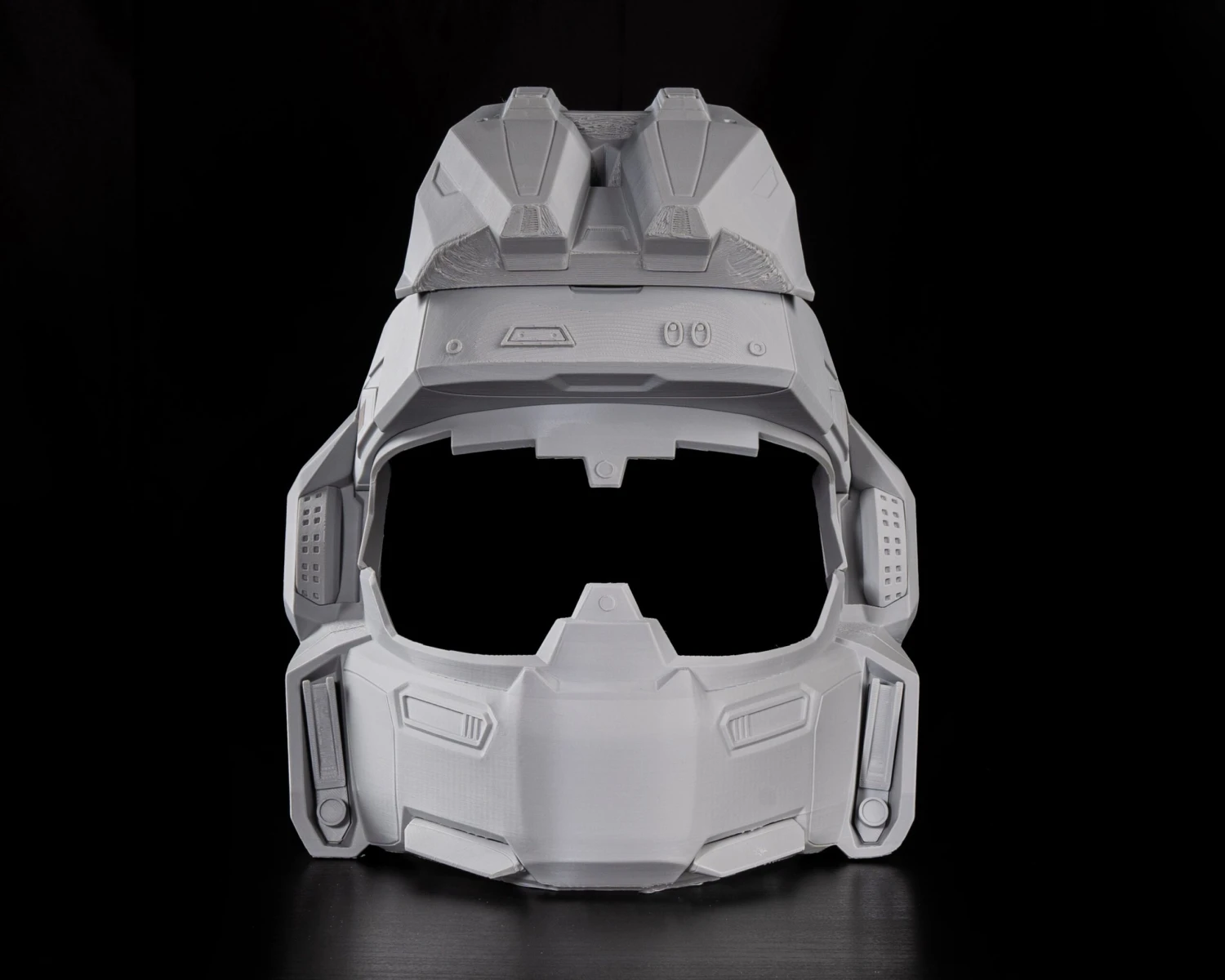 A 3D printed replica helmet of the Grenadier helmet, better known as Jorge’s helmet, from Reach!