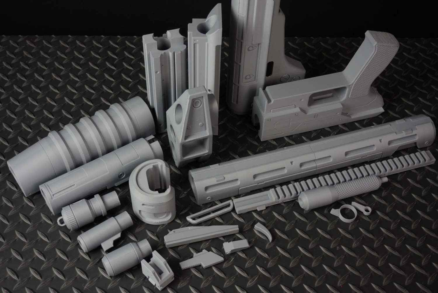 Raw 3d prints for the M45 Shotgun as seen in Reach
