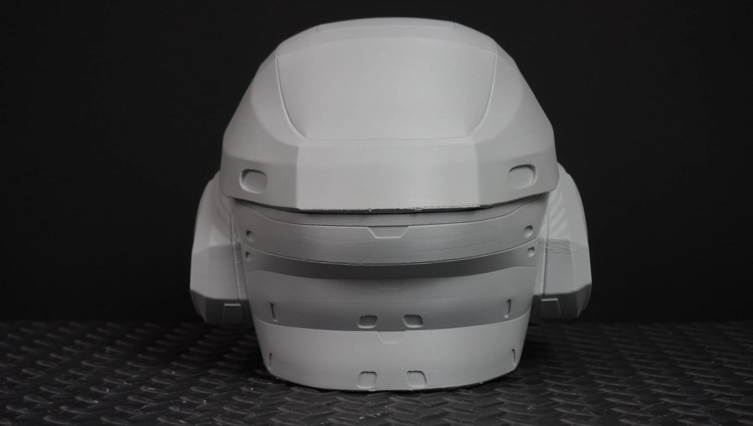 Printed in durable PLA at an extremely detailed layer height, this helmet is perfect for a display piece or as part of a cosplay.