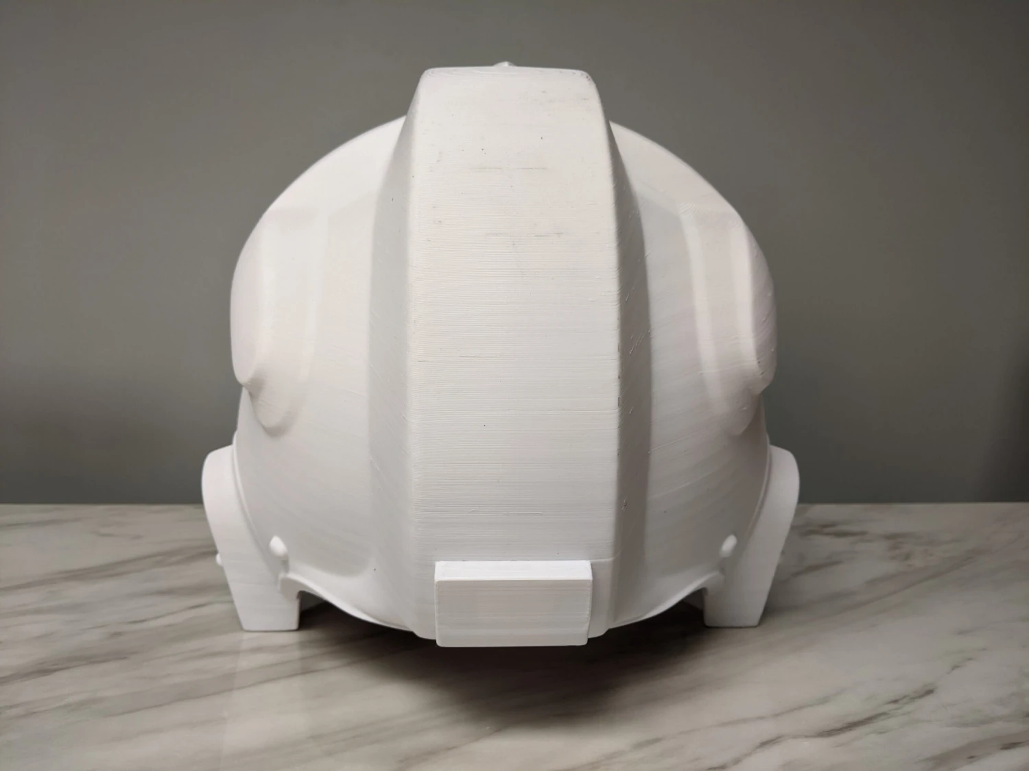 This helmet is shipped in 2 main pieces: the face plate and dome. You have your choice of face plate – either with the teeth cut out to put your own backing or the teeth detailed for you with a grid pattern.