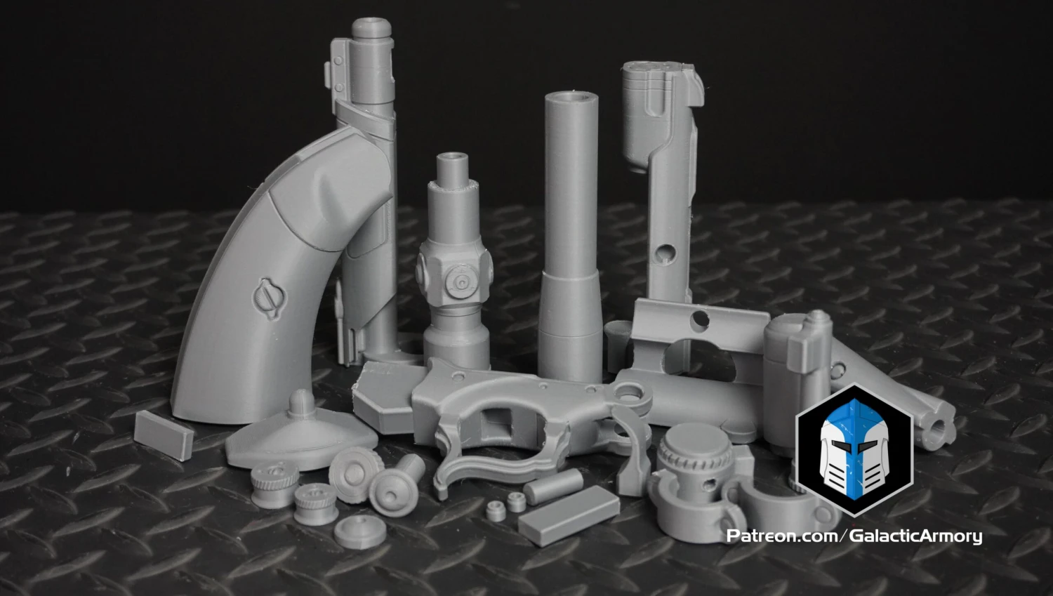 Raw 3d printed parts for the Westar 88 Blaster Pistol.